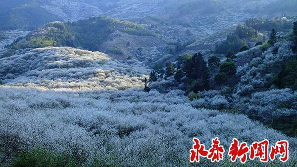 永泰新闻网讯(实习记者 章盈旖)寒冬初至,永泰山间,千万亩梅花凌寒绽放。带点倔强,带点执着,白中带青的梅花延绵于山中,似霜似雾。隐约之中,不时还有粉色梅花点缀其间。梅花盛放,一树树婀娜多姿,漫山遍野,原野山峦就像下了一场大雪,仿佛置身于北国雪野的浪漫之中。