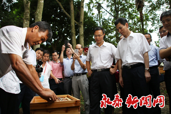 坵演村蜜蜂扶贫项目技术培训现场 曹建平一行先后查看了梧桐镇春光村茉莉花产业扶贫项目和坵演村蜜蜂扶贫项目,嵩口镇(古街)产业联盟、农业合作社、扶贫产品线上线下销售平台,并现场观看了永泰县惠民资金网使用展示。结合实地看点,现场人员向参观团一行介绍了我县建立的扶贫工作格局和工作机制,重点展示了近年来我县通过龙头企业带动和发展乡村旅游、小额信贷、技术帮扶、就业保障等举措推进脱贫攻坚事业的亮点成绩。