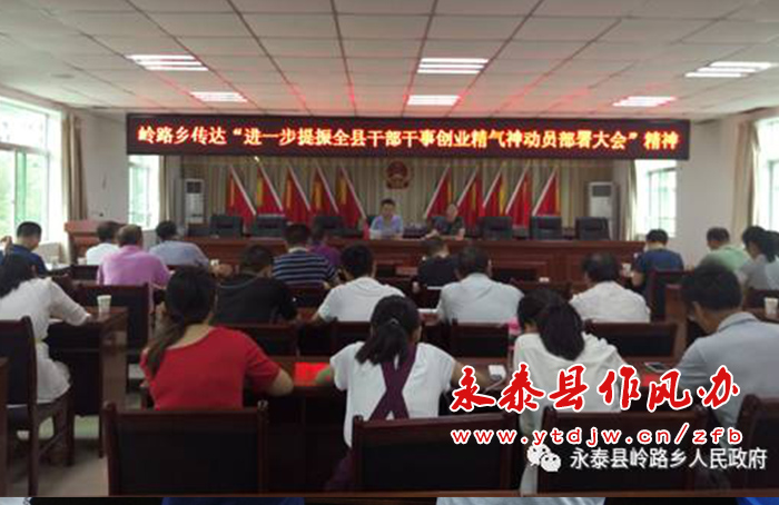 岭路乡 10月9日下午,岭路乡召开机关全体干部职工大会,会上传达了关于进一步提振干部干事创业精气神的市委办《通知》以及县部署会领导讲话精神。党委书记林建清强调三点意见:一要提高认识,深刻领会提振干部干事创业精气神的重要意义。坚持以一马当先的魄力,以奋发进取的干劲,“撸起袖子加油干”,把各项工作做快、做精、做优,推动岭路各项工作全面发展。二要履职尽责,勇于担当。乡、村干部要根据年初工作目标倒排工作进度,按照县委、县政府以及乡党委、政府的工作部署,要扑下身子实干,雷厉风行快干,积极投身百日攻坚,确保干出结果、见到成效,推动岭路再上新台阶。三要结合推进“两学一做”学习教育常态化制度化,全面查找存在的问题,推动立说立改、即知即改,形成“不能等、不能停、不能看、不混日子、不当懒汉”的良好工作作风。