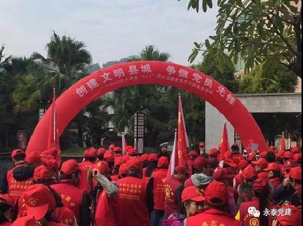 为深入学习贯彻党的十九大精神,营造党员志愿服务浓厚氛围,充分发挥党员先锋模范和示范引领作用。永泰县结合“12.5国际志愿者日”,于12月5日上午,在县南湖公园,围绕“亮红色身份,当志愿先锋”主题,举行“创文明县城争做党员先锋”活动启动仪式,全县1000多名党员志愿者纷纷行动,拉开了全县志愿者服务活动的大幕。
