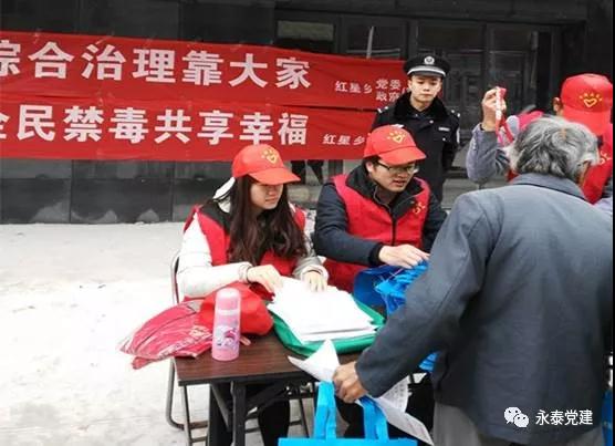 红星乡党委为杜绝和遏制毒品犯罪活动蔓延,减少毒品的社会危害,切实加强禁毒宣传工作,联合派出所组织党员志愿者在集市开展党员活动日禁毒宣传活动,通过发放宣传资料和小礼品,帮助广大农民了解毒品危害,树立防毒意识,提高拒毒能力。