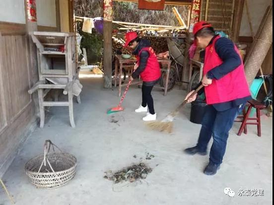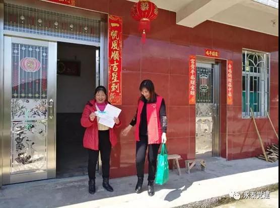 盖洋乡前湖村党支部党员志愿者带头,带领群众投工投劳,参与到道路清理、路面整修当中,全力推进绿化公园工程建设进度。 助力脱贫攻坚 打造幸福永泰 在脱贫攻坚工作中,党员志愿者积极结对帮扶贫困户,为贫困户送温暖、献爱心等,送去党的关怀,帮助贫困户早日脱贫,打赢脱贫攻坚战。