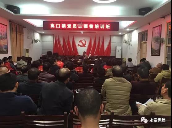发放宣传资料,提高创城氛围 嵩口镇党委举办党员志愿者培训班,党委书记鲍瑞坊就如何增强志愿者服务意识为切入点,对志愿者服务相关法律法规、服务内容和服务规范等相关知识进行讲解,进一步提升嵩口镇党员志愿服务水平。