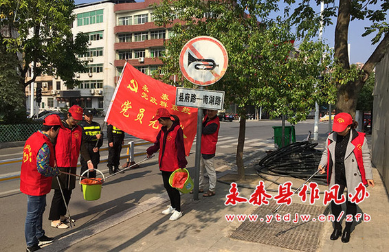 县政法系统党委 12月10日,县政法系统党委组织党员志愿者深入开展创建省级文明县城志愿服务活动。整个活动过程,党员志愿者全力以赴,重点清理花圃绿化带等卫生死角的垃圾和整顿占道电动车,广泛宣传文明出行、爱护环境理念,并对行人不文明行为进行劝阻。