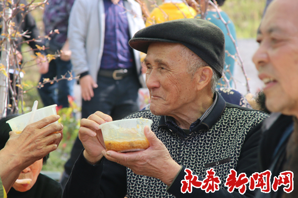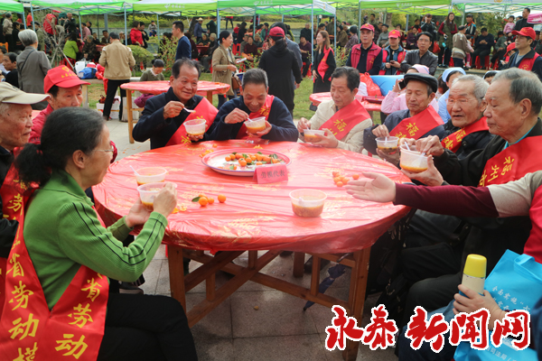 在活动现场,记者看到,36张圆桌摆放整齐,百名老人围坐在圆桌旁,品着拗九粥,看着文艺演出,笑逐颜开。 市劳动模范吴梓官老人告诉记者,他非常高兴看到永泰举办这样一个活动,也从中感受到了浓浓的孝心。