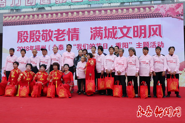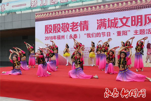 殷殷敬老情 满城文明风 10月17日上午,由中共福州市委文明办、永泰县文明委联合主办的2018年福州(永泰)“我们的节日·重阳”主题演出活动在县小汤山文化中心广场上演。县委常委、宣传部长曾玉出席了此次活动并给老人们送上了节日礼物。 演出用人民群众喜闻乐见的文艺形式——舞蹈、快板、乐器演奏、闽剧表演唱等为老人们带来了一场精彩的文化艺术盛宴,演出在整齐而有节奏的腰鼓舞《夕阳红满天》中拉开,旗袍舞《春满芳甸》、寿星小合唱《歌唱祖国》、太极拳表演、葫芦丝演奏《竹楼情歌》、《马车夫舞曲》、萨克斯演奏《呼伦贝尔大草原》……一个个精彩的节目赢得了在场老人们的阵阵掌声,在热闹的氛围中,老人们脸上洋溢着笑容。
