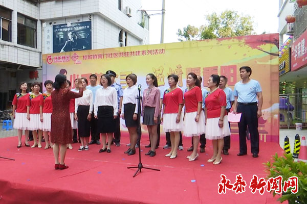 南门社区:小手拉大手 温情暖重阳 在南门社区,由南门社区携手共建单位联合举办的重阳节系列活动在南门社区一楼广场举行。 活动现场,由县总医院的专家们为老人们进行义诊,志愿者们为老人进行义剪。南门社区全体工作人员还送上《没有共产党就没有新中国》、《燃烧我的卡路里》、《感恩的心》、《青云山之旅》等节目,将现场气氛推向高潮。老人们听得入神,看得喜悦,整个表演活动中,掌声雷动,笑声不断。