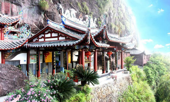 永泰同安镇洋尾村爱荆庄(苏永青摄) 在永泰,有始建于唐大中二年(848 年)的极乐寺;有始建于唐文德元年(888 年)的名山室;有始建于宋崇宁元年(1102 年)的圣人庙(即孔子庙,又名文庙);有始建于宋建隆二年(公元 961 年)的方广岩寺;有始建于北宋政和年间(1111 年-1117 年)的姬岩寺;还有始建于清康熙二年(1663 年)的闇亭寺等等。位于永泰县大洋镇的“名山室”,是国家级重点文物保护单位 。主殿名山室,悬崖覆盖,可容纳数百人,有东西两室,善男信女分东西入梦叩神。灵龟洞,有一长 10 米,高 2 米摩崖石窟图,是我国仅存“白莲菜”造像遗迹。“白莲菜”南宋盛行江南,“连社七祖”为宗门之祖,教义大多不抵荤酒,不杀物命,近于为善。有说是释迦牟尼从诞生到成佛的经过地,包括游观农务、牧女献糜、世尊诞生、太子纳妃、六年苦行、世尊成道、禅河大悟、习炼降魔、二商粥食、希会宝地、佛现金刚等组画。其中七佛图更是雕得栩栩如生,是一幅生动的佛教史卷。祖师洞建有宋代飞檐翘角古建筑,明末贤人余潜士在傍书斋撰对联“草草花花世界,山山水水人情”耐人寻味。有诗句曰“登高观世成真梦,山静闻声悟妙心”。有“公公十分公道,婆婆一片婆心”等众多摩崖石刻。西侧凤立峰下玄帝殿、观音阁依洞而建。观音阁上供奉的一尊石像男士观音极为珍贵。