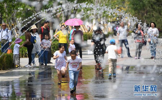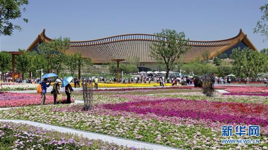 游客在北京世园会园区休闲(5月10日摄)。 新华社记者 李欣 摄 从昆明到北京,世园会见证绿色发展的“中国追求” 距离园区不远的延庆康庄镇,大片的油松、侧柏、国槐、杨柳等苍翠茂密,微风吹过,树叶簌簌作响,树旁野花怒放。20世纪90年代前,这里被称为“南荒滩”,土地沙化,贫瘠荒凉,“一年一场风,从春刮到冬”。经过6年苦战,延庆人在此栽下300多万株苗木,砾石荒滩披上绿装。“当年种下的树现已成林,绿染妫川,荒滩变绿洲。”昔日的造林模范、75岁的杨进福老人,忆起治理南荒滩的艰难感慨良多。 如今的延庆,因多年持续造林绿化,森林覆盖率从新中国成立初期不足7%,增长到现在的59.28%,山水连绵,满目葱茏,成为京北一道绿色生态屏障。