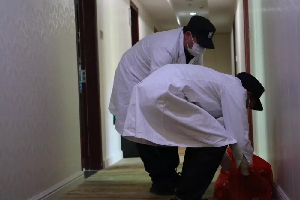 隔离期间,后勤保障领导小组针对八方快捷酒店医学观察点每日安排6名安保人员,按照3班制24小时全天候守护执勤方式,为入驻人员免费配送三餐,准时将三餐送达隔离人员的房间门口。