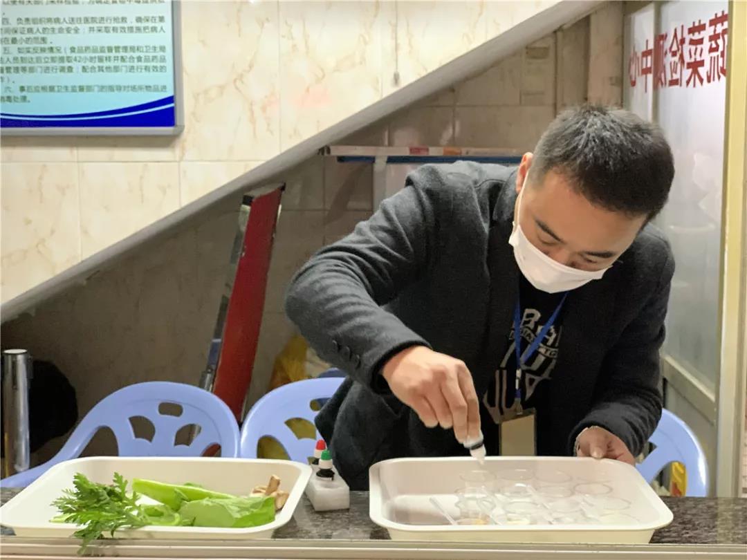 在南门农贸市场,记者看到各入口都悬挂着小喇叭,循环播放着“入驻者、消费者进入市场请佩戴口罩!”。市场内,每一个经营户、消费者都佩戴起了口罩,工作人员还对各经营户进行体温测量,并对测量情况进行记录。蔬菜检测中心里,工作人员也正忙着对蔬菜、水果等进行抽样检测,让市民的“菜篮子”拎得更放心。