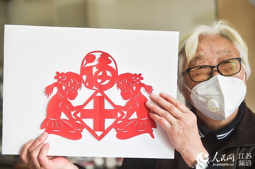 《守护天使》旨在表达对“白衣战士”的感谢 邵丹摄 来源:人民网-江苏频道 2020年02月04日22:25 人民网南京2月4日电 (记者朱殿平)一把剪刀几张红纸,手指生花间便是一张张祝福图案。2月4日是二十四节气中的第一个节气——立春。在南京市建邺区沙洲街道中胜社区,88岁的剪纸艺人、老党员吴融芳,用剪纸的方式,祈祷早日赶走“瘟神”。红彤彤的剪纸,代表着春的希望,代表着战胜疫情的信心。 立,是“开始”之意;春,代表着温暖、生长。立春意味着新的一个轮回已开启,开始进入风和日暖、万物生长的春季。吴融芳告诉记者,她剪纸寄情的心思萌生在3天前。““现在是疫情防控的关键时期,如果能融合传统文化,运用我擅长的方式,为逆行的医护人员加油打气、为身边的邻里亲友送上安慰,那我作为党员、作为志愿者,义不容辞。”于是,她紧赶慢赶,终于在立春时节完成了这项特殊的创作。 从选题材、画草稿,到剪制、拼接、粘合,吴融芳费了不少工夫。“比如这幅《宅》,我想号召大家尽量宅在家里,疫情当前,普通居民一定要保护好自己,不能给一线添麻烦。”吴融芳说,“原本是想通过花鸟环绕营造温馨家园,但女儿说非常时期要直白醒目,我就直接剪了一个大大的‘宅’字。” 在《竹报平安》《全民防疫》《守护天使》等作品中,“福”字、花瓶、竹子、梅花、红十字、戴口罩的小人等象征平安、寓意美好的物象也不胜枚举,无一不寄托着这位88岁老人当下最朴实的心愿:“《守护天使》顾名思义,两个戴口罩的小人面对着红十字敬礼,是在表达对白衣战士的感谢。还有几幅作品中的花元素,我都选的梅花跟水仙,因为这是春天的花,我想告诉大家,我们会一起迎来春暖花开。” |