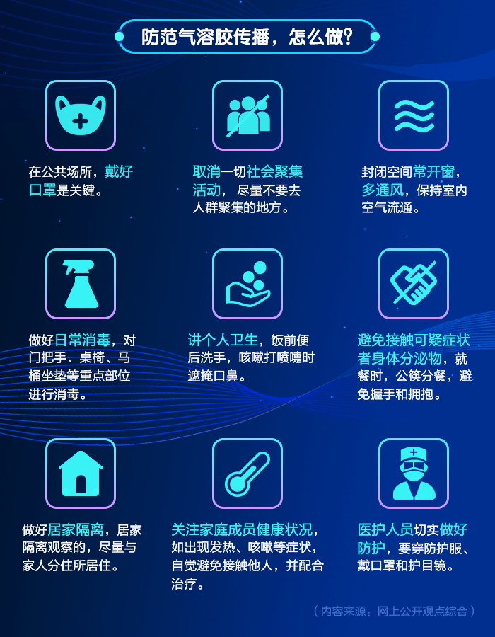 2月8日,在上海市疫情防控进展新闻发布会上,有专家提出了新型冠状病毒肺炎的传播途径或存在气溶胶传播。此消息迅速引发网民热议,新浪微博话题#新冠肺炎传播途径包括气溶胶传播#阅读量高达7亿多次。 新华睿思对网民情绪的分析显示,超过四成的网民对“气溶胶传播”感到淡淡的哀伤,认为“病毒太狡猾了,难道真的连呼吸都是错了?”更有网民担忧,气溶胶能够飘多远?开窗通风会不会引“毒”入室?但也有一部分网民表现很淡定,认为“病毒感染需要一定浓度,被空气稀释后单枪匹马也没用”。 气溶胶传播到底是什么? 中国疾控中心流行病学首席专家吴尊友表示,气溶胶传播是指飞沫在空气悬浮过程中失去水分而剩下的蛋白质和病原体组成的核,形成飞沫核,可以通过气溶胶的形式漂浮至远处,造成远距离的传播。