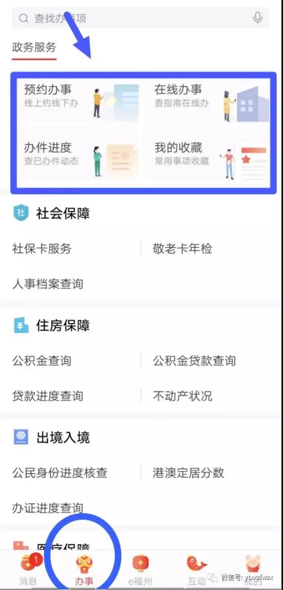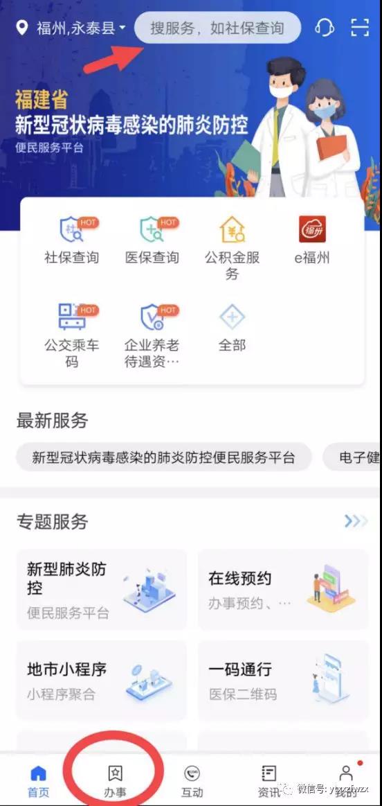 3“e福州”APP,下载并登录,选择“办事”模块,办理查询相应服务信息。