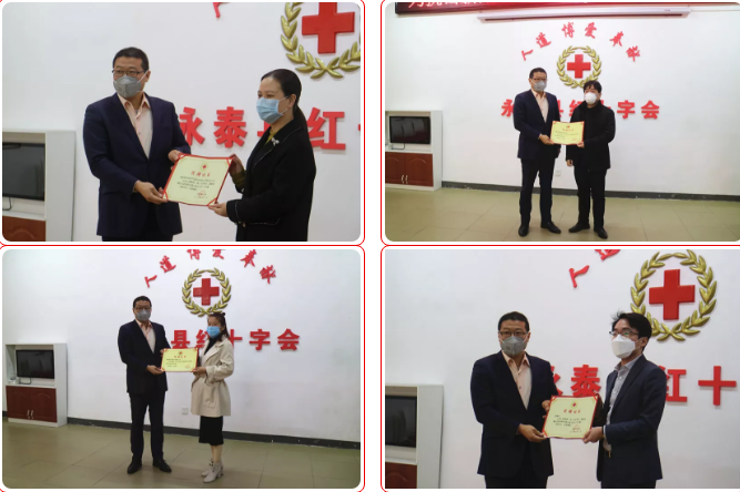 我县向捐赠企业、爱心人士颁发捐款捐物证书 截至目前,我县红十字会累计募集到款项406万余元、接收口罩3000多个、防护服200多件,已经有402万余元投入到全县疫情防控第一线。 部分捐赠企业和个人捐赠名单: 序号 捐款单位(个人) 捐款额 1 福建省永泰建筑工程公司 30万元 2 永泰县农村信用合作联 30万元 3 永泰县上一房地产开发有限公司 30万元 4 福建星原建设工程发展有限公司 20万元 5 福建永建融房地产开发有限公司 20万元 6 福建永宏建设工程有限公司 10万元 7 永泰县筑诚机制砂有限公司 10万元 8 福建骐福建筑工程有限公司 10万元 9 福建省利恒建设工程有限公司 10万元 10 永泰县建筑企业协会 10万元 11 永泰华永实业有限公司 5万元 12 永太建设集团有限公司 5万元 13 福建省建设工程咨询公司 5万元 14 福建冠景旅游开发实业有限公司酒店分公司 5万元 15 福州工商学院师生 1.8万余元 16 政协委员倪波涛5万元 17 政协委员、工商联副主席邱家强 3万元 18 政协委员张瀚武 2万元 19 政协委员檀遵清 1万元 |