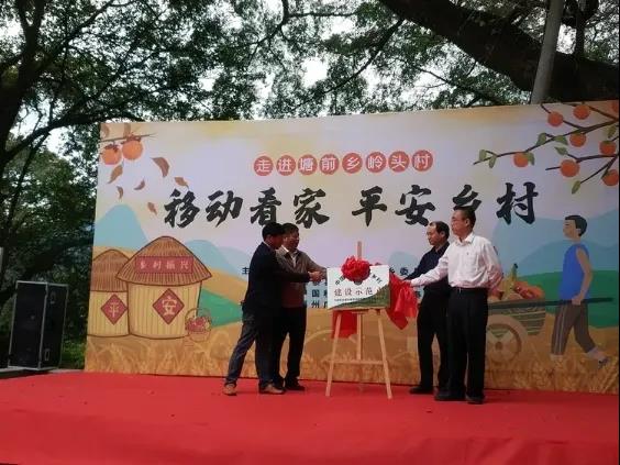 示范点揭牌仪式 揭牌仪式后,参与活动领导、嘉宾参观了岭头村移动平安村监控中心,听取了关于平安乡村建设情况的汇报,对中心基础配套建设及移动和家亲平安的管理系统表示高度认可。
