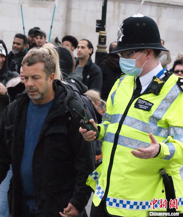 当地时间10月24日下午,英国伦敦市中心发生6000多人“反疫情封锁”的抗议活动。这是自今年3月新冠疫情爆发实行封锁措施以来,伦敦发生的第四次大规模反封锁游行。图为警察敦促示威者保持社交距离。 中新社发 高天胤 摄 抗议游行活动组织者、英国“拯救我们的权利”组织创始人露易丝·克莉菲尔德(Louise Creffield)和英国工党前党魁杰里米·科尔宾(Jeremy Corbyn)的哥哥皮尔斯·科尔宾(Piers Corbyn)对游行队伍发表了演讲。克莉菲尔德呼吁“坚守我们的权利”,科尔宾则呼吁“停止新常态、拯救生命”。 伦敦警察厅当日表示,该抗议游行活动没有遵守防疫风险评估条款和政府指导方针,没有保持社交距离,属于非法集会。 截至下午6点,伦敦警方已经逮捕了18人,涉嫌罪名包括违反新冠疫情条例、袭击急救人员和暴力骚乱,两名警员受轻伤。(完) |