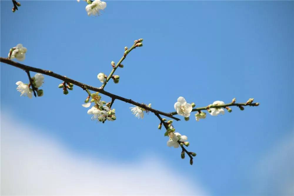 “烟霏霏,雨霏霏,雪向梅花枝上堆”。古人的这句诗描写的便是梅花绽放枝头的美丽景象。