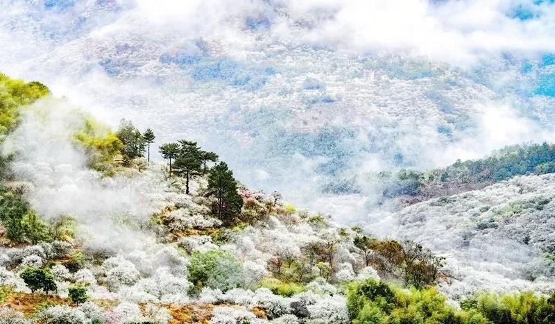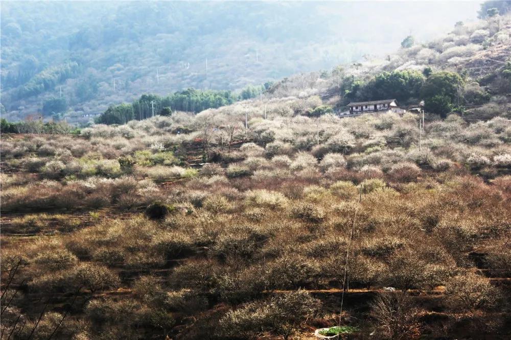 葛岭镇溪洋村沿着蜿蜒的山路而上,漫山遍野开满白梅,飘散着淡淡的梅香。一簇簇,一丛丛。它们或散小径边或立山坡上,或依竹篱,或临水岸,或掩屋舍旁……