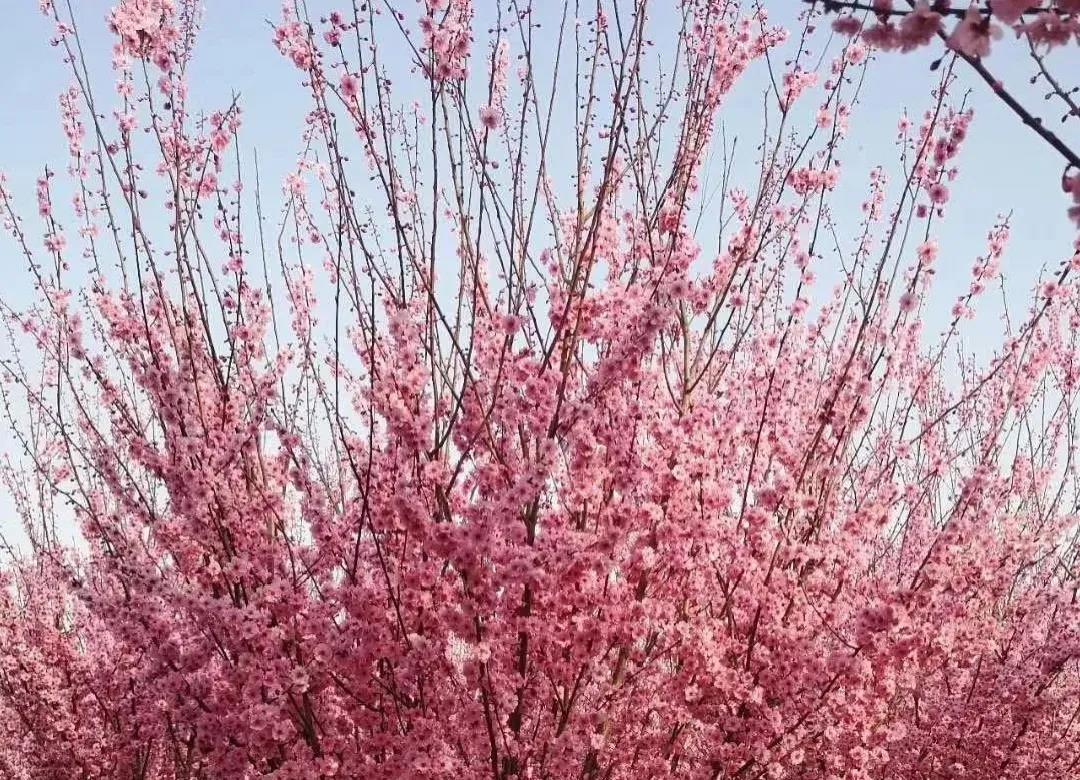遒枝托着嫩蕊,白花映着疏影。一大片一大片向寒而开,纤巧深情、缤纷热闹。