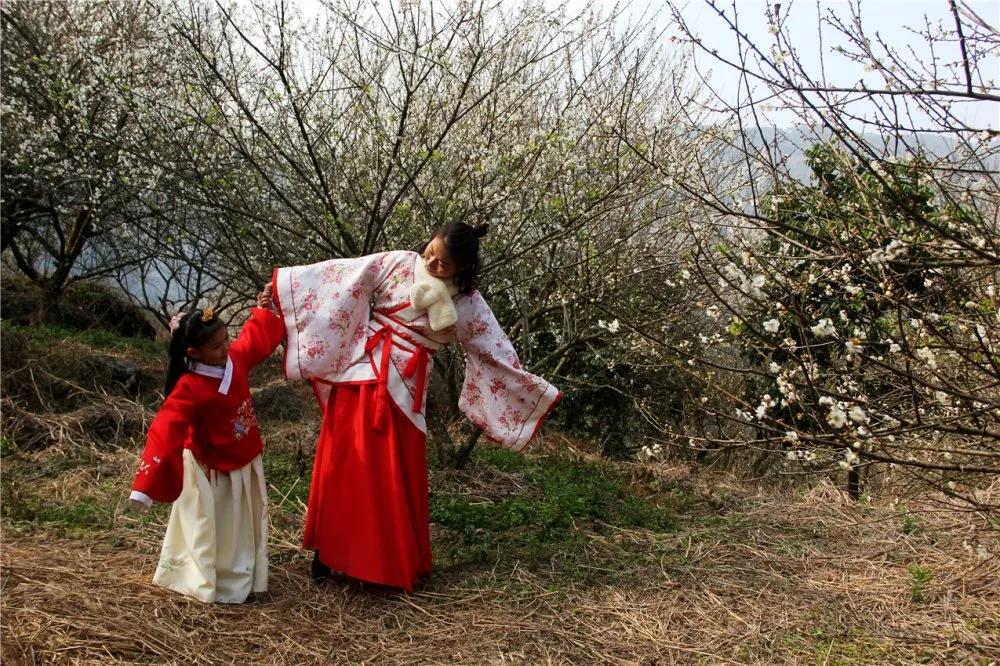 尽管现在梅花还未全部盛放,但已经有不少人前往葛岭镇溪洋村的百花农庄打卡,也吸引了许多身着各式汉服的小姐姐前来拍照。