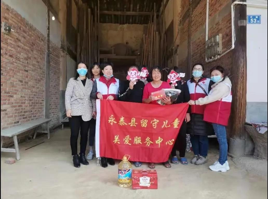 县留守儿童关爱服务中心携手福州市义工俱乐部、永泰县义工协会等爱心团队走访13个乡镇,为50户贫困留守儿童家庭送去了价值4万余元的米、油、冬衣等春节慰问品,让留守儿童家庭切实感受到社会大家庭的温暖。