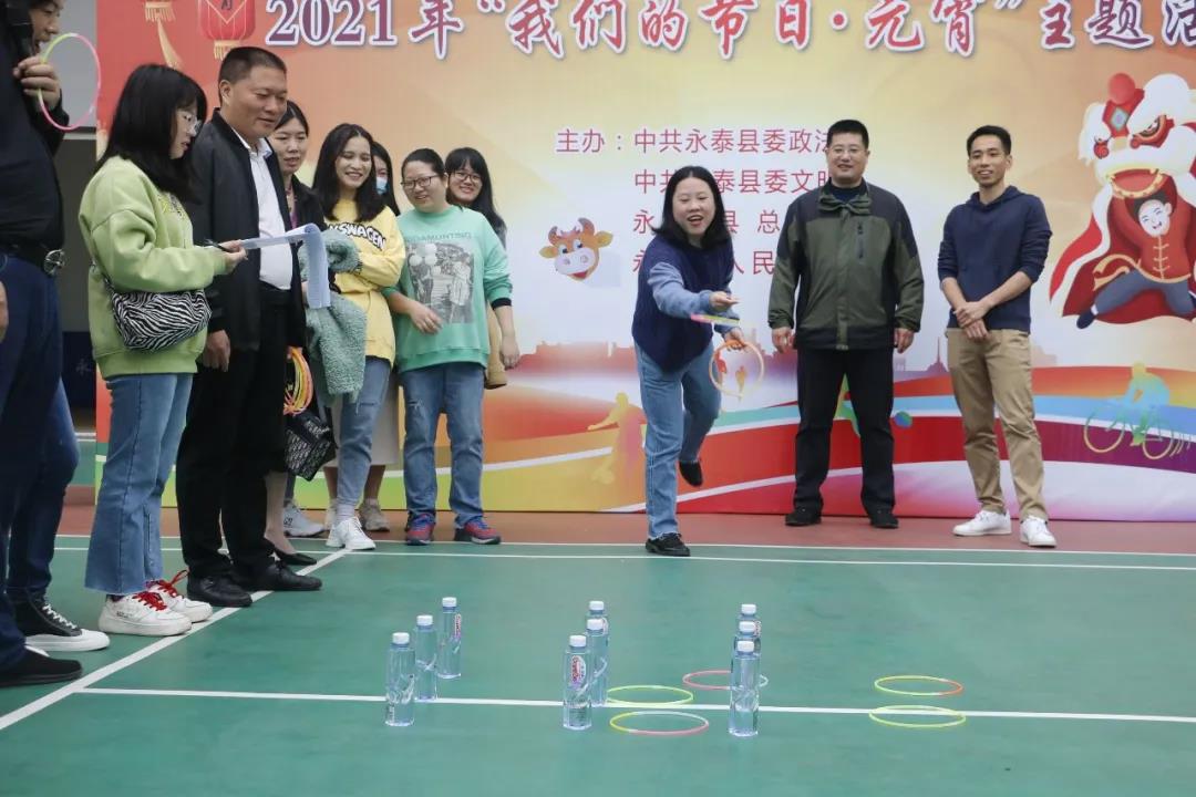 趣味运动会 2月25日,永泰县委政法委、县文明办、县总工会与县检察院统筹规划、精心组织,开展我们的节日·元宵节趣味运动会新时代文明实践活动,弘扬中国传统元宵文化,丰富干部职工的文体娱乐活动,着力营造佳节喜庆、祥和的节日气氛,增强干部职工团结向上、健康、科学的生活方式。 元宵节趣味运动会分为个人赛与团队赛两个环节,主要以互动游戏为主。飞镖一扔一个准,篮球一投一个进,大家兴致勃勃地参与,活动现场充满了欢声笑语,尽是一片和乐融融的景象。