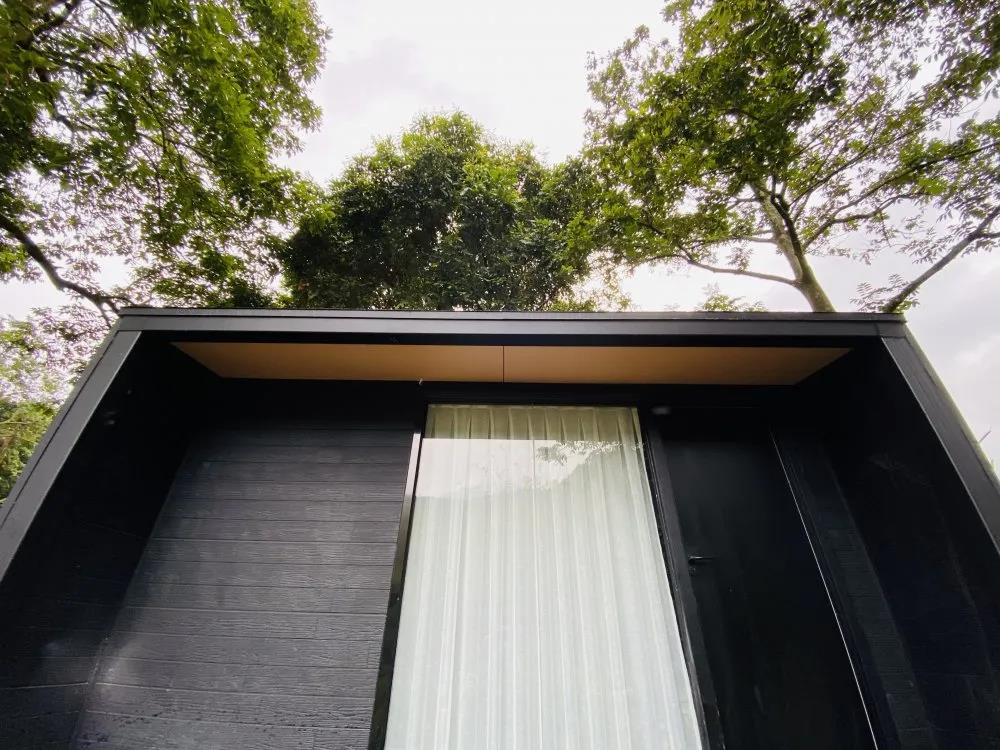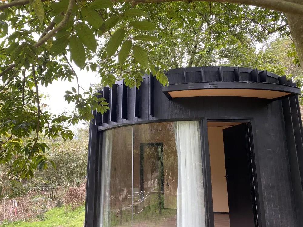 为了不破坏周边的环境,民宿主体造型随着不同地形和林木生长形成的不同空间而变化独立建造,保证了入住的独立性。民宿内俯仰之间尽为天地,大面积的落地玻璃让窗外的自然景观与空间融为一体,满足了人们对自然的向往。在这样一个极简的空间中,目之所及充盈着简约与美好!