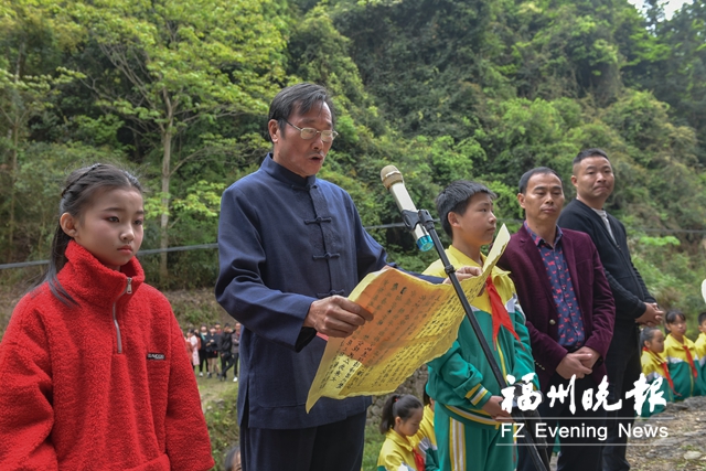 福州晚报记者 翁宇民/文 陈暖/摄 “岁序辛丑,三月初九。节逢谷雨,祭字射斗……” 20日是传统节气谷雨,在抑扬顿挫的疏文诵读声中,辅弼岭古官道再现焚香祭字纸的传统一幕。这是永泰县同安镇三捷村传承数百年的古老仪式,先是主祭人献祭上香,宣读疏文,而后在长者带领下老少村民将平日收集的字纸恭敬地送入“惜字坛”。 这些繁复的仪式,为的是传承尊文崇道的精神。