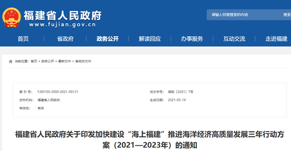 5月22日,福建省人民政府公开《加快建设“海上福建”推进海洋经济高质量发展三年行动方案(2021—2023年)》。这三年,福建将从大力发展临海能源产业、建设海上牧场、推进临海产业现代化等十余个方面推进海洋经济高质量发展。