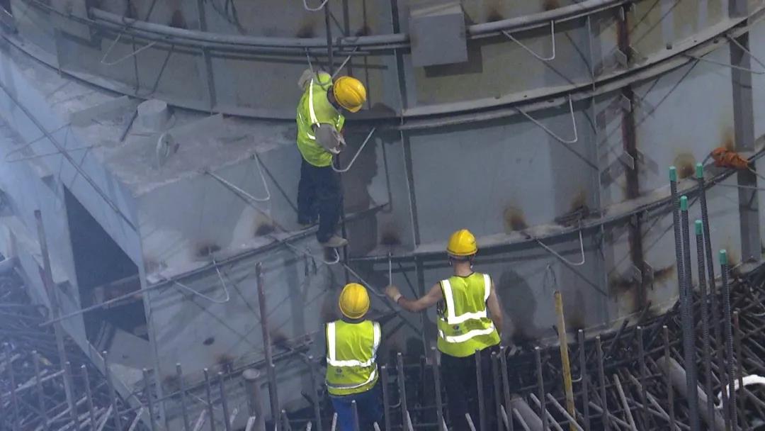地下厂房内工人们正在有序地进行焊接、安装模板、浇筑混凝土作业。机械轰鸣声、混凝土浇筑声与施工人员指挥声汇聚成一首激昂的奋战进行曲。据项目负责人介绍,截至目前,地下厂房首台机组发电机层已经顺利封顶,正在进行座环研磨和定子下线,二号机组正在进行蜗壳混凝土回填,三号机组正在进行座环蜗壳基础浇捣,整个项目已完成总投资的55%左右。 福建永泰闽投抽水蓄能有限公司 副总经理 钟斌:地下厂房机组从今年9月1日全面进入机电安装,同时,还进行了引水系统的钢管安装、尾水的混凝土衬砌,为明年8月份的首台机组发电创造条件。 自“攻坚120天”专项行动开展以来,永泰抽水蓄能电站项目持续发力,相继完成地下副厂房封顶、开关站继保楼封顶、GIS楼封顶、1号主变室封顶、定子磁化试验等一系列关键节点目标。国庆期间建设者们坚守一线,抢抓施工进度。 福建永泰闽投抽水蓄能有限公司 副总经理 钟斌:国庆节,我们安排了1600人坚守岗位施工,继续开展地下厂房2、3号机和主变室主变的混凝土浇捣,以及开关站继保楼的土建施工,为今年10月份主变压器就位,以及GIS设备的到位做准备。