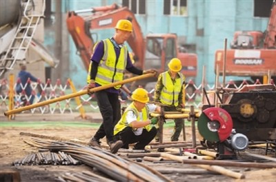 6月24日,内蒙古自治区包头市友谊十九小区改造现场,工人们在工地上忙碌。 新华社记者 彭 源摄