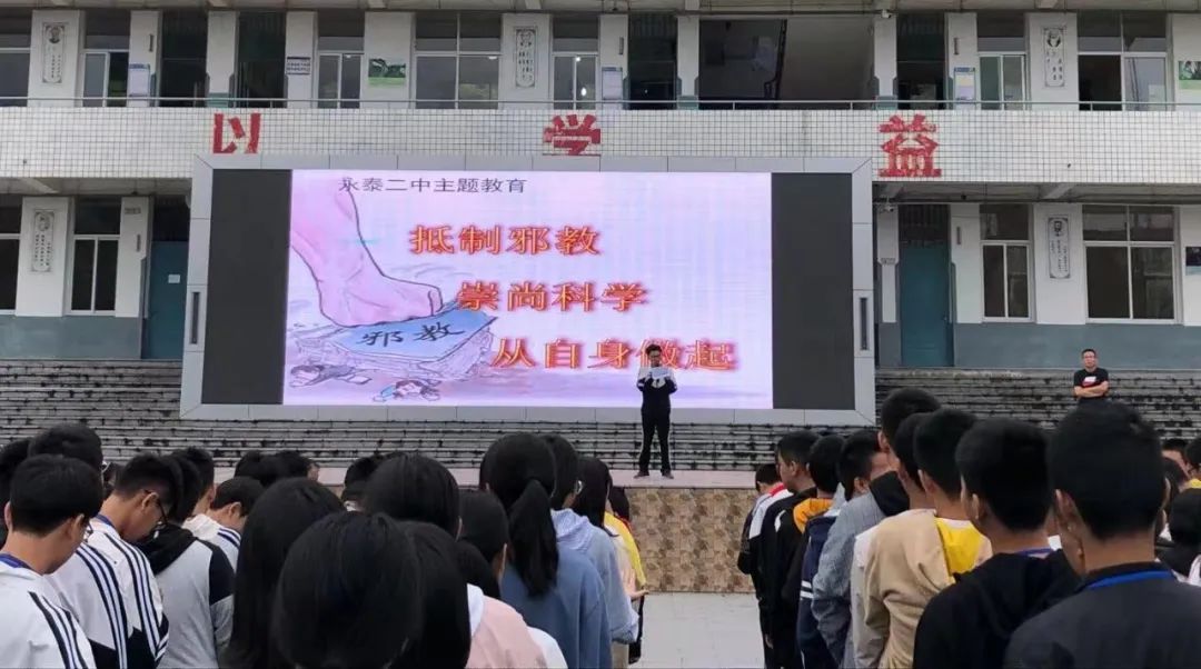 为进一步增强校园反邪教宣传力度,切实增强师生反邪识邪的意识和能力,新学期伊始,永泰县教育局组织各中小学校开展反邪教“开学第一课”警示教育宣传系列活动,营造校园人人参与反邪教的浓厚氛围。