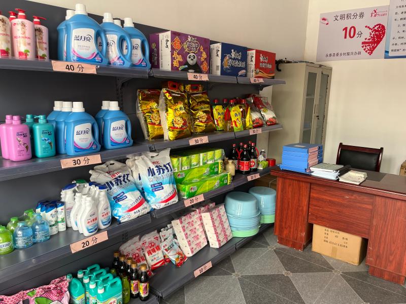 记者看到在村里的“积分超市”聚集了不少前来买东西的群众,与其他超市不同的是,在这里买东西不用金钱,而是用积分。 村民:“自从我们村里开展了文明制积分行动,我们村民就是每个月自己打理好自己的房前屋后卫生,但也是做自己的事实,然后凭着这个我得到了20积分,今天过来就换到了这个纸巾,也很高兴,我感觉村里开展这个活动非常好,各方面对村里对村民也很多好处,大家更能自觉做好自己房前屋后的卫生,给这个环境带来了很大的收获、收益。” 据了解,近年来,洋中村一直将移风易俗作为精神文明建设的重要工作来抓,将遵纪守法、环境卫生、志愿服务等内容纳入村规民约,将乡风文明“软要求”量化为“硬指标”,每季度组织村民小组长、村民代表等根据村规民约落实情况对村民进行打分,所得积分可以到洋中村“积分超市”兑换礼品。