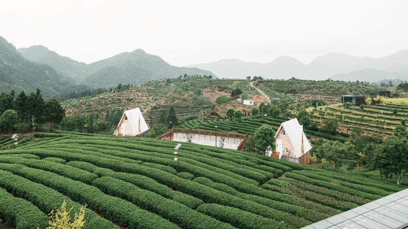露台两侧是我们新打造的木屋民宿,作为园区的住宿配套,让游客可以身处其中能够尽享大自然的秀美,在茶园中感受绿色,在茶香中放松心情。 目前,我们的一期项目已完成,在二期的项目计划中,我们还将打造集茶文化宣传教育、传统手工制茶技艺体验、茶艺表演、茶产品展示以及茶产业生态文化旅游等为一体的研学基地,组织茶农集市,推广从农场到餐桌的农场概念,让农场的餐桌延续到家庭的餐桌,增强游客的体验感。