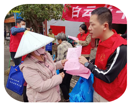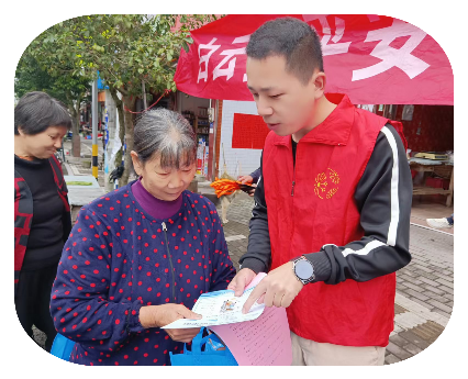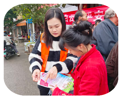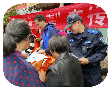 宣传团队向村民发放平安建设倡议书,围绕“平安建设知晓率、社会治安满意率、矛盾纠纷调解率”三大核心,用“拉家常”的方式介绍乡村治安巡逻、矛盾调解、应急处置等平安建设举措;同时鼓励村民积极参与村里的平安志愿活动,主动配合矛盾纠纷调解,共同为提升乡村“平安三率”、建设平安乡村贡献力量。 04《禁毒》宣传