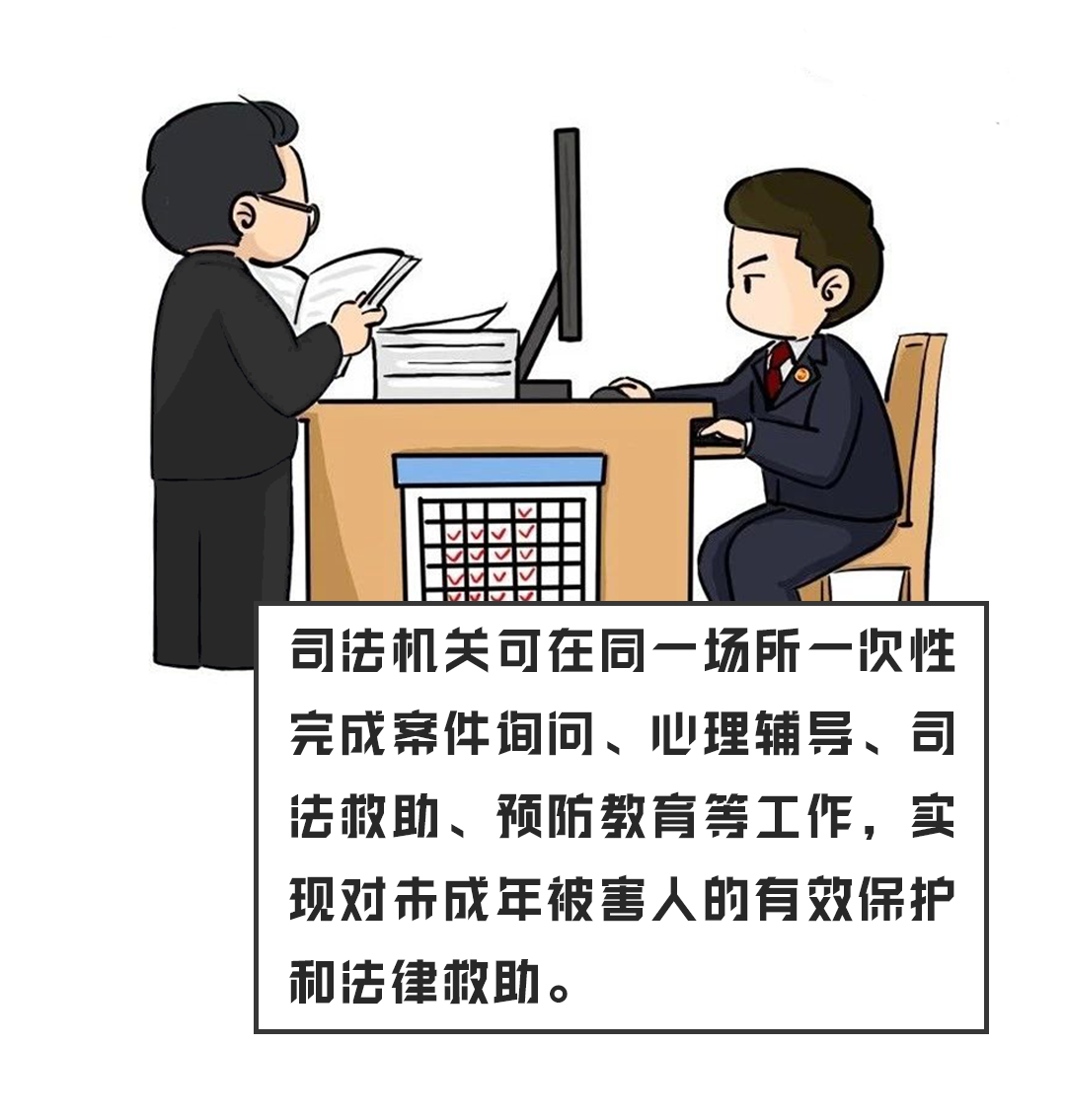 该中心配备同步录音录像、心理测评、心理疏导等办案设备,司法机关可在同一场所一次性完成案件询问、心理辅导、司法救助、预防教育等工作,实现对未成年被害人的有效保护和法律救助。 未成年人受到伤害,在案件办理过程中,心理生理方面产生阴影怎么办? 为避免因刑事诉讼不同阶段反复、不当的询问未成年被害人,造成次生伤害,永泰法院联合县委政法委、县检察院、县公安局出台《关于未成年被害人“一站式询问”工作的实施办法》。明确就公安机关侦查阶段对未成年被害人的询问工作,检察院和法院可视情开展“一站式询问”,并就适用案件的对象范围、询问时间方式内容、合适成年人、法律援助、司法救助、心理健康服务、保密工作等内容作出规定。