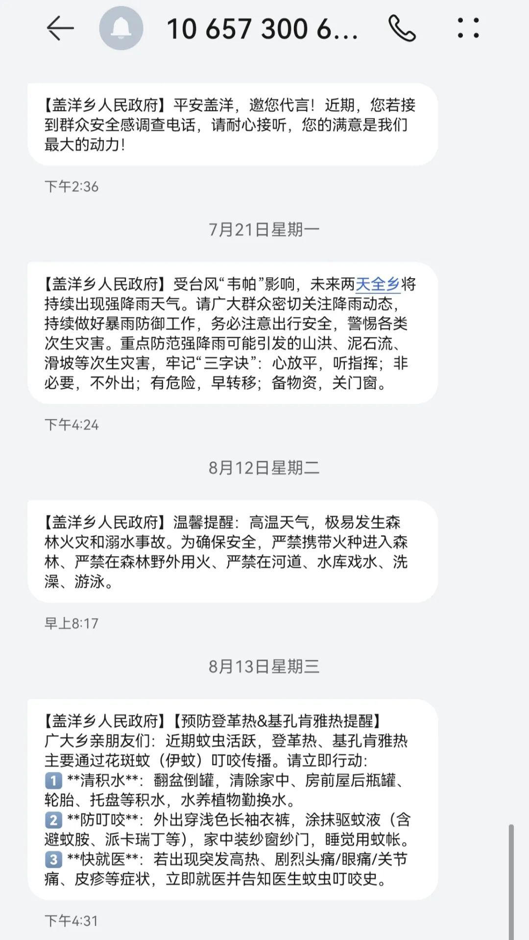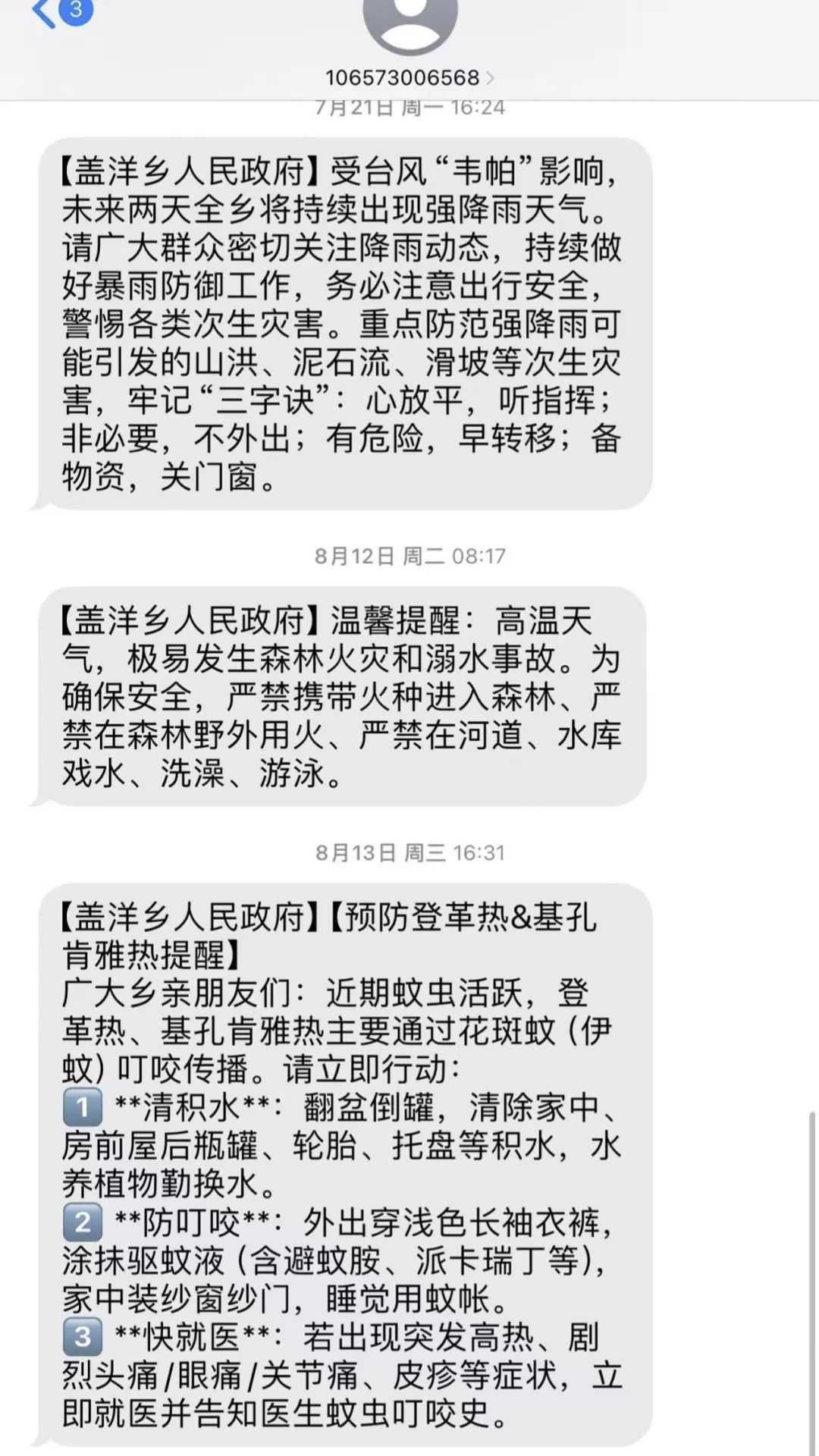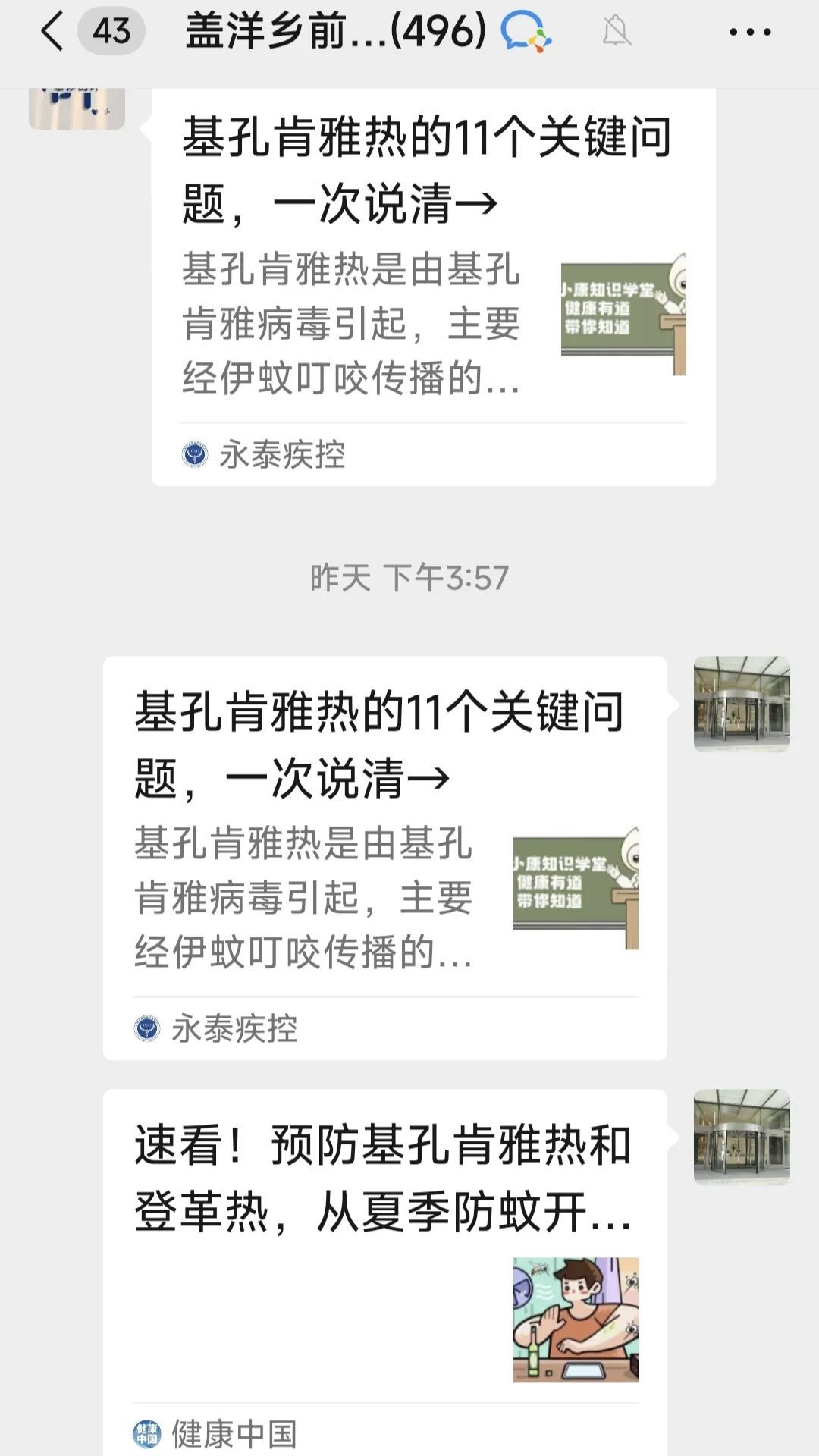 为有效预防基孔肯雅热和登革热的传播 切实保障广大村民的身体健康 盖洋乡人民政府积极行动 开展了一系列村庄清洁专项行动 多举措筑牢乡村健康防线 1、蚊虫消杀作业 乡政府组织工作人员对公厕、绿化带、垃圾桶点、下水道及水沟等蚊虫孳生重点区域实施集中消杀。 工作人员采用专业喷雾设备,对各个区域进行精准喷洒,有效杀灭成蚊及幼虫,最大限度降低蚊虫密度,全力筑牢公共卫生安全防线,营造安全洁净的生活环境。 2、清理积水行动 乡、村干部和志愿者深入农户家中,重点对易积水的容器进行全面排查、清理积水,从源头上杜绝蚊虫孳生。 在清理积水过程中,工作人员讲解积水与蚊虫滋生的关系以及基孔肯雅热、登革热的防控知识,引导村民养成定期清理积水的良好习惯,让每一位村民都成为防控工作的参与者。 3、多种渠道宣传 各村充分利用 LED 显示屏,滚动播放防蚊控病的宣传标语和科普知识。全方位、直观化向村民传递防控信息,引导群众自觉投身防蚊行动。 各村干部在村民微信群内及时转发预防基孔肯雅热、登革热的相关推文,确保村民第一时间获取权威防控信息,有效提升村民对相关疫病的认知水平和防范能力。 乡政府通过短信平台向群众推送防蚊技巧及蚊虫叮咬后处置方法,确保全乡群众全面掌握防蚊要点,在日常生活中做好自我防护。 盖洋乡将持续深化爱国卫生运动 将蚊媒传染病防治融入日常管理 与人居环境整治提升长效结合 全力筑牢公共卫生安全防线 为建设更健康的美丽盖洋贡献力量 防蚊小贴士: 1、定期清理并清除室内外积水 2、清除垃圾、杂物,减少蚊虫栖息场所 3、做好个人防护,外出使用驱蚊剂、居家使用防蚊帘 |