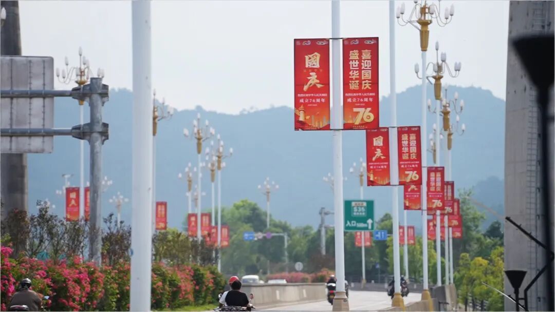 为迎接中华人民共和国成立76周年 永泰县从主干道到公园广场 从商圈街巷到公共场馆 处处点缀着鲜艳的“中国红” 向祖国深情告白! 漫步在城区主干道上 两侧红旗整齐排列 将街道映衬得格外红火 来往车辆与行人穿梭其间 构成一幅充满活力的国庆街景图 这一抹抹“中国红” 在清风拂动下舒展 既扮靓了街道 也承载着市民对祖国的深情与美好祝愿 各商业街也换上“节日新装” 一面面五星红旗整齐悬挂,随风轻扬 透着节日的喜庆氛围 景区开启 “盛装模式” 通过红色主题装饰、 节日景观打造、氛围细节点缀 将国庆氛围与山水风光、文化特色融合 为游客营造节日出游体验 此外 我县还设置以国庆为主题的造型景观 让全城的节日氛围达到最大效果 同时 我县还通过永阳古城、城关中学、 永阳文化中心、刘岐桥头等 城区各处户外LED大屏 循环播放国庆宣传标语与主题海报 勾勒出热烈、喜庆祥和的节日氛围 |