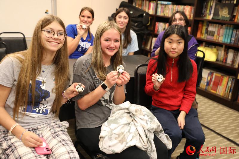 当地时间11月6日,华盛顿美京中国文化中心举办“中国城里品中国”活动。 人民网记者 李志伟摄 “中国城里品中国”是在华盛顿唐人街举办的专题文化活动,旨在向青少年展示中华传统文化。参加这次活动的美国高中生在工作人员的指导下,学习用黏土制作熊猫玩偶、编中国结、写毛笔字、水墨拓印。