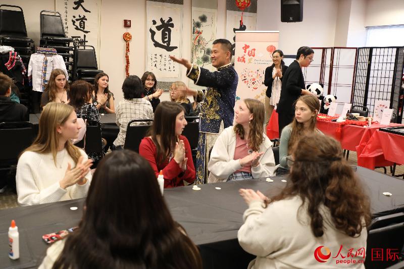 当地时间11月6日,华盛顿美京中国文化中心举办“中国城里品中国”活动。美国马里兰州伦纳德镇高中近40名学生参加活动,体验中国传统艺术和手工艺制作,感受中国传统文化的魅力。