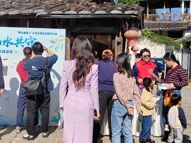 ★商家倡议齐响应,诚信经营暖旅途 活动现场,古街商家代表共同签署“明礼”倡议书,承诺文明待客、诚实经营,用诚信经营为文明旅游添砖加瓦。签署后的倡议书被张贴在“文明旅游”展板上,接受市民游客的监督。