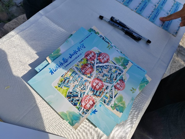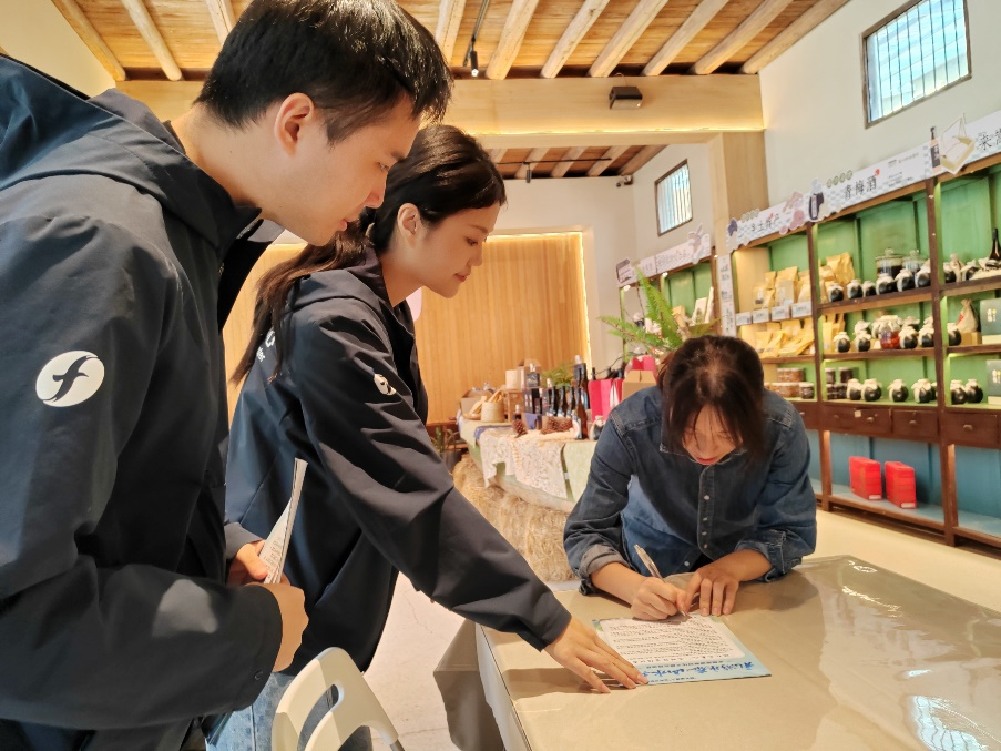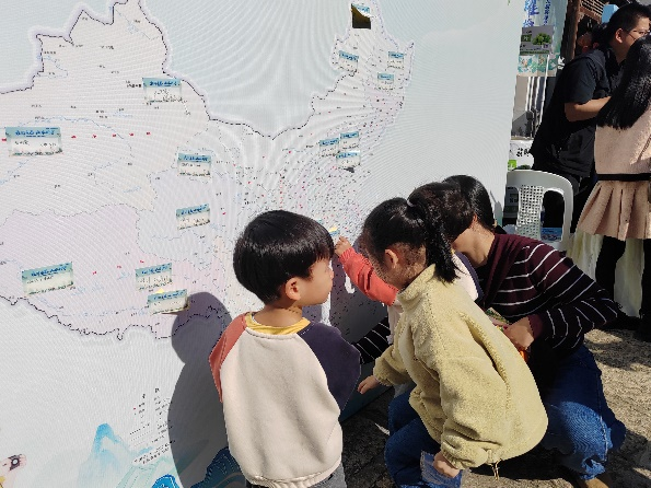 嵩口法庭旧址·文明承诺墙:巨大的中国地图展板前,大家在心仪的旅游省份贴上“文明旅行”承诺便利贴并签名,以庄重的仪式感践行文明约定;