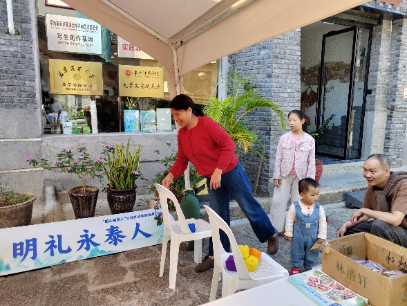 嵩口供销社·沙包投投乐:拿起沙包瞄准印有文明旅游标语的展板,击中3条相关标语即可通关,在投掷的乐趣中牢记文明准则;