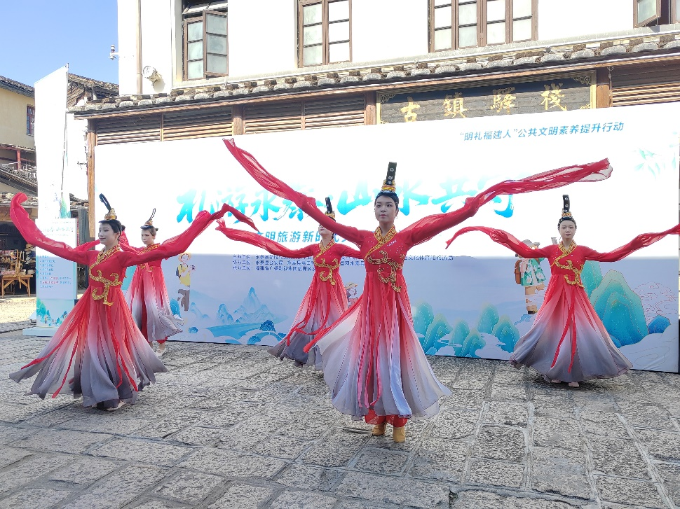 ★快闪表演添活力,古街焕新展风采 活动间隙,两场精彩的快闪舞蹈表演惊艳亮相。表演团队身着靓丽服饰,在古街的石板路上翩翩起舞,灵动的舞姿与古街的古朴韵味完美融合,吸引了众多市民游客观看拍照,现场掌声、欢呼声不断。快闪表演不仅为活动增添了活力,更让文明旅游的理念在轻松愉悦的氛围中广泛传播。