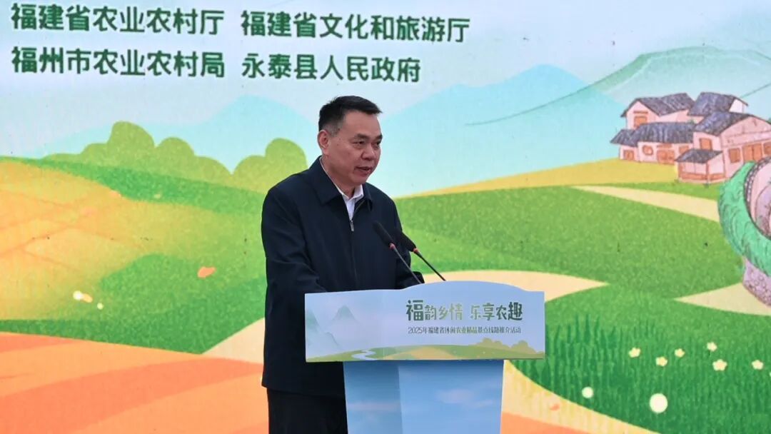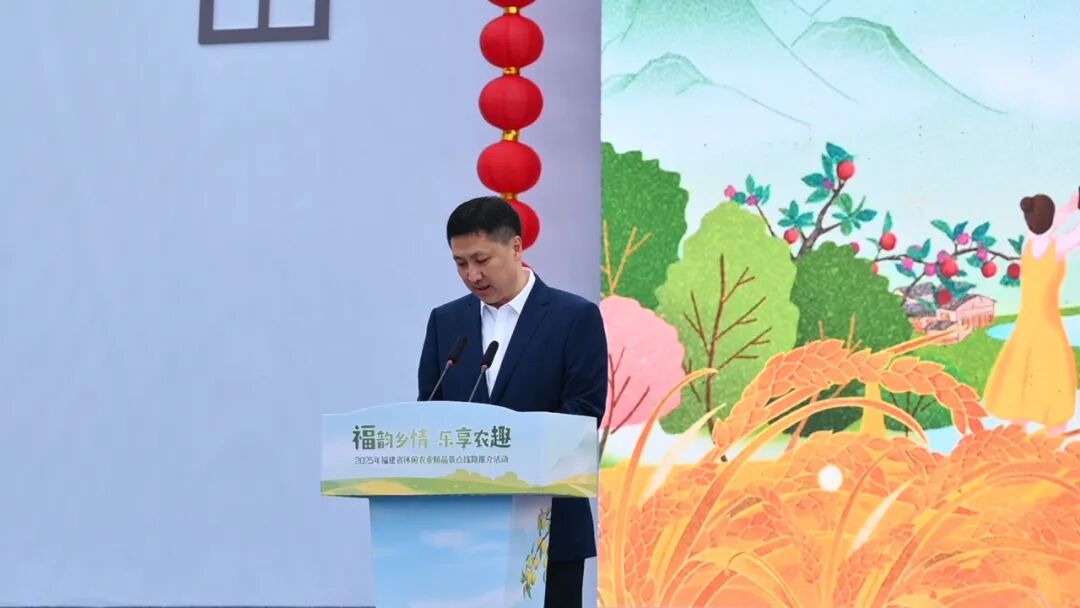 推介环节紧凑有序,亮点突出 活动邀请网络知名旅游主播郭涛、 国传大V卡佳担任推介官 解读10条县域休闲农业精品线路特色 永泰县以 “山水为底、农产为魂、 农旅为脉” 为主题 推介 “李梅之乡” 休闲农业特色名片 德化县则聚焦 “陶瓷 + 农旅” 模式 进行重点县推介 福鼎白茶文化系统通过文艺节目展示 传承农业文化遗产价值 此外 现场发布 “2025 年福建省美丽休闲乡村和 美丽休闲农业点” 名单 并为精品线路、精品村、精品点颁奖 其中,永泰县 “山水共融 美食留香” 线路 获评人气精品线路 活动现场还穿插 以福建山水为背景情景歌舞表演 演绎乡村休闲场景 让观众直观感受乡村旅游的乐趣 县人民政府副县长 陈军: “近年来,永泰县立足实际资源禀赋,深挖庄寨、古镇、山水、美食、温泉等要素,打造樟溪画廊,融入环戴云山脉产业发展联盟,已策划推出了4条中国美丽休闲乡村旅游精品线路,1条自驾线路及2条全国乡村旅游精品线路。下一阶段,永泰将以此次活动为契机,利用政策与平台资源,举办李梅文化节、斗茶赛等活动,探索‘农业 +’多元融合模式,紧扣全国休闲农业重点县‘国家全域旅游示范区’建设,力争到‘十五五’新增4个中国美丽休闲乡村、7个省级美丽休闲乡村。”