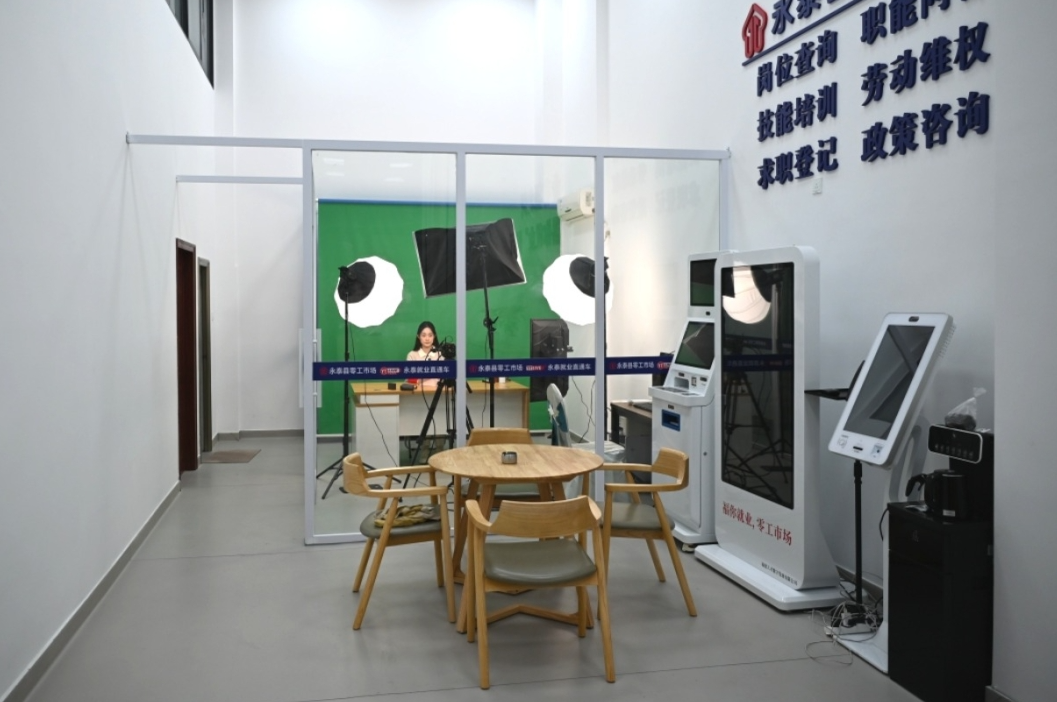 走进“永泰就业直播车”直播基地 只见专业的直播机位、导播系统、 灯光和收音设备一应俱全 直播间里,主播正实时推介岗位、 解答薪资待遇、晋升空间等问题 引导求职者留言互动、投递简历 直播基地坚持“专业化建设、常态化运营” 固定每周开展1场直播带岗活动 直播团队还会邀请就业顾问 在线解读简历优化技巧、面试注意事项 针对求职者关心的 社保缴纳、劳动合同签约等问题作解答 为求职者提供全方位的咨询服务