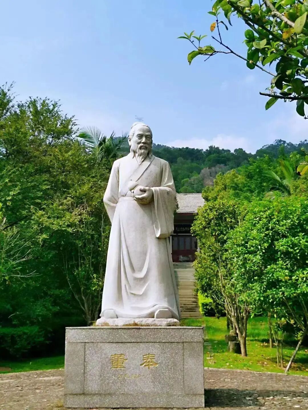 董奉雕像。段玲 摄 “杏林”是中医学界的代称。传说董奉在庐山隐居,每天为人看病,不收医药费,但要求病重被治好的人在山下种5棵杏树,病轻被治好的人种1棵杏树。几年后,杏树成林。董奉用杏子换粮食,救济贫苦百姓。