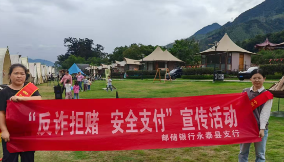 近日,为扎实推进电信网络诈骗防范宣传教育工作,有效提升广大群众识骗、防骗意识与能力,邮储银行永泰县支行精心组织开展“反诈拒赌 安全支付”主题宣传活动,以实际行动守护群众财产安全。