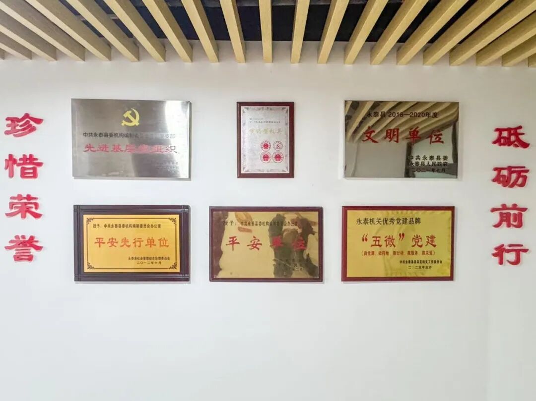 墙上展示近年来县委编办荣获的“节约型机关”“先进基层党组织”“文明单位”等奖牌,激励全办党员干部珍惜荣誉,砥砺前行。 |
